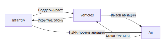 Диаграмма влияния (пехота ↔ техника ↔ авиация):